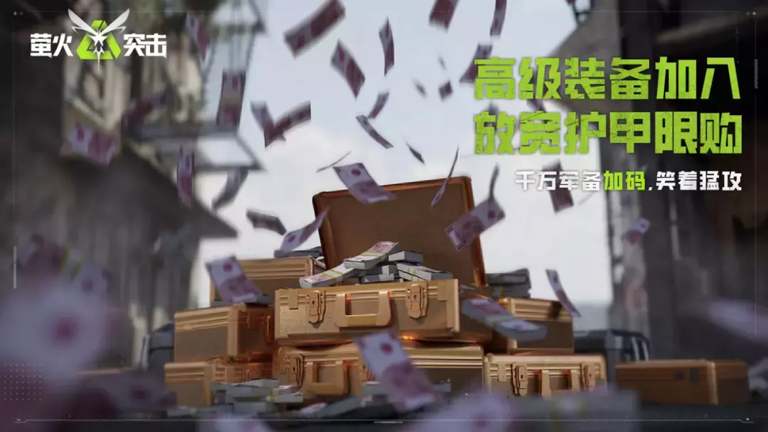 千万军工券现已发放中!即日起,上线装备券商店投掷物商店。装备券可以直接兑换全套四级五级高级装备,投掷物商店手雷烟雾弹通通管够,萤火虫放心攻,萤宝就在你身后!