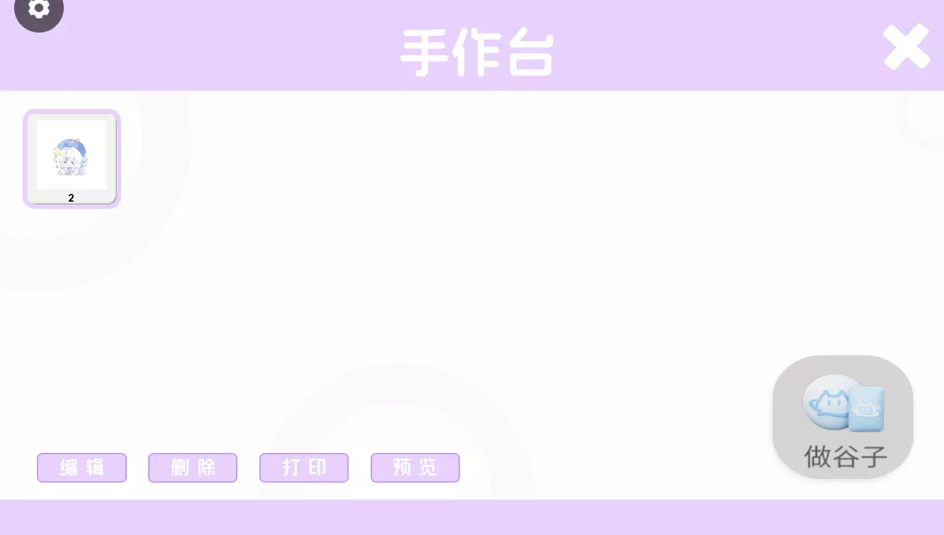 2.右上角【背包】是已经打印的谷子&拍照的地方(照片会自动保存入手机相册);【制作物料】就是进入手作台