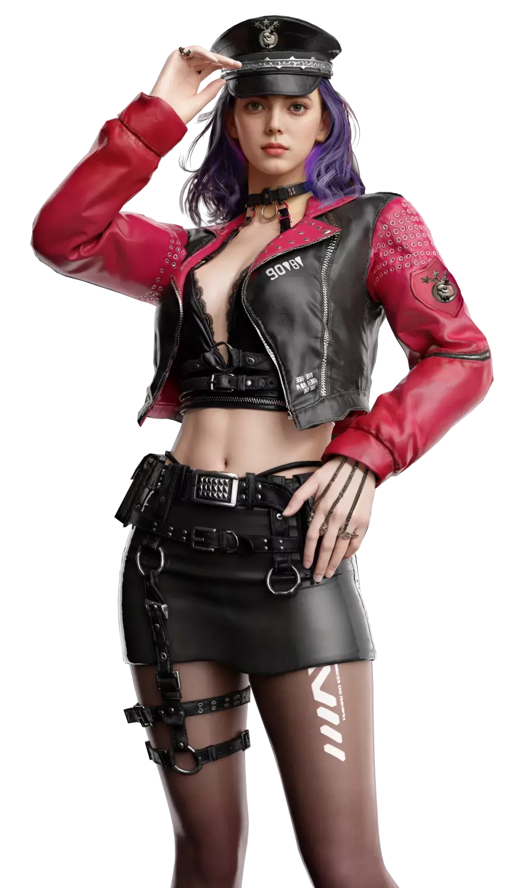 皮衣上身,粉黑搭配,甜酷警官报道!你已进入射程范围内,请放弃各种无谓的挣扎!还作抵抗的话,瞄准好的子弹可不长眼呐~