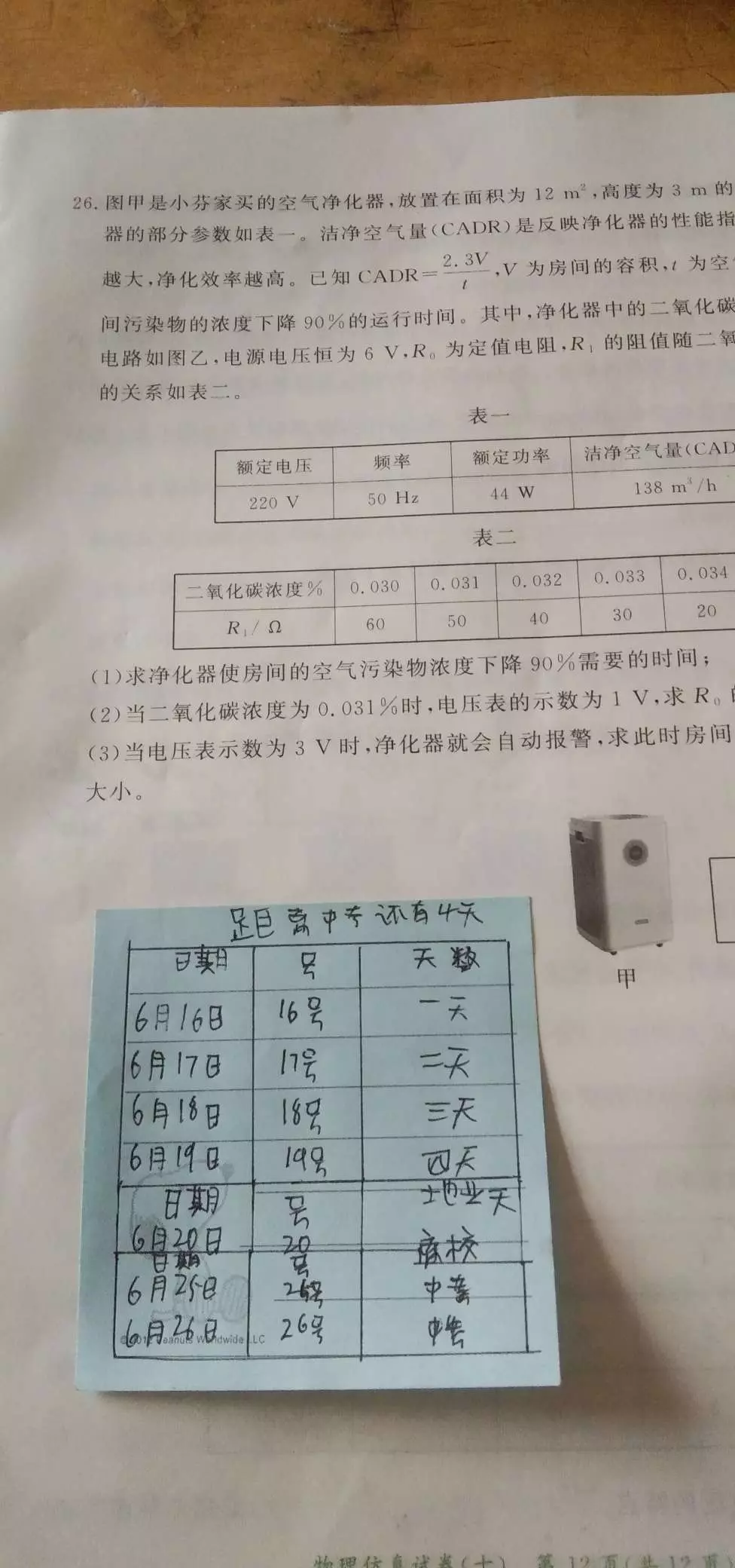 下周离中考还有四天