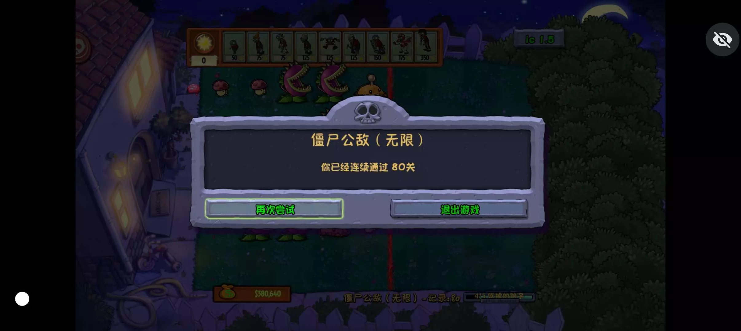 僵尸公敌无尽通关80关!!!!!😋😋😋😋😋