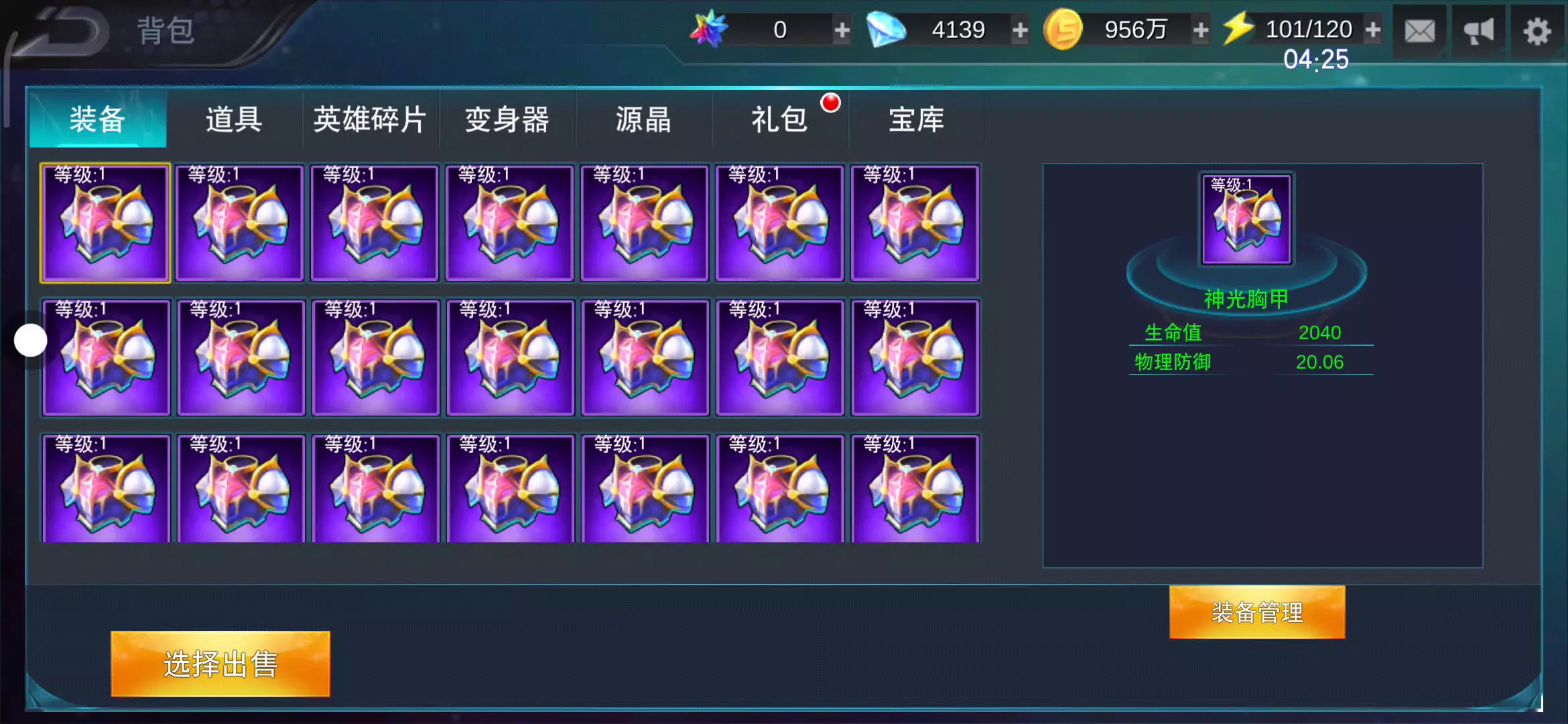 大约有99个紫色装备