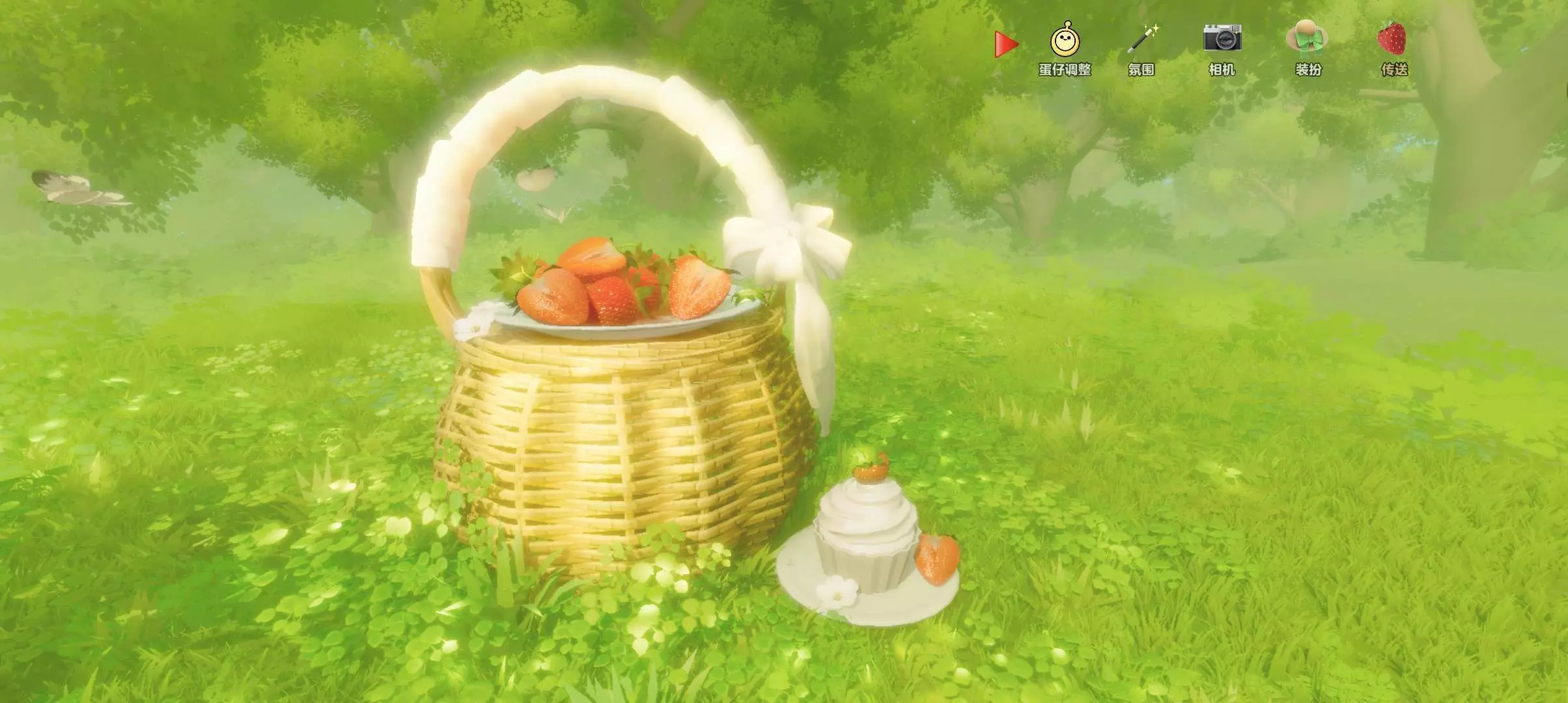 这个就是第①个打卡点,草莓真的超级生动,像真的一样😍好想一口吃掉🍓🍓旁边还有一个草莓小蛋糕🍰还有森林做点缀,太棒了吧(≧▽≦)