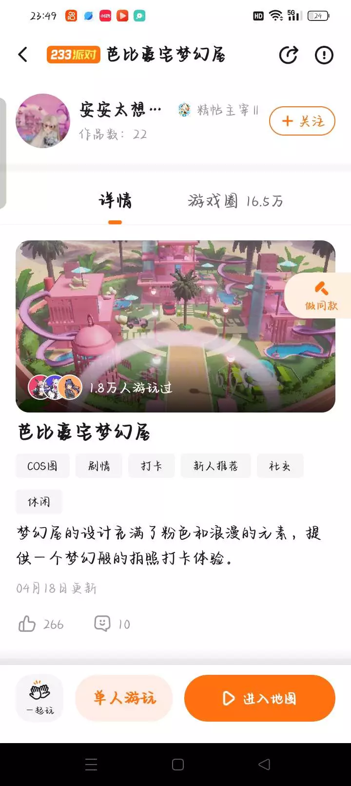 这期是一个芭比豪宅,超级的少女风,并且里面元素的拍上几张照也是很好看,喜欢粉色的,可以去打卡一下