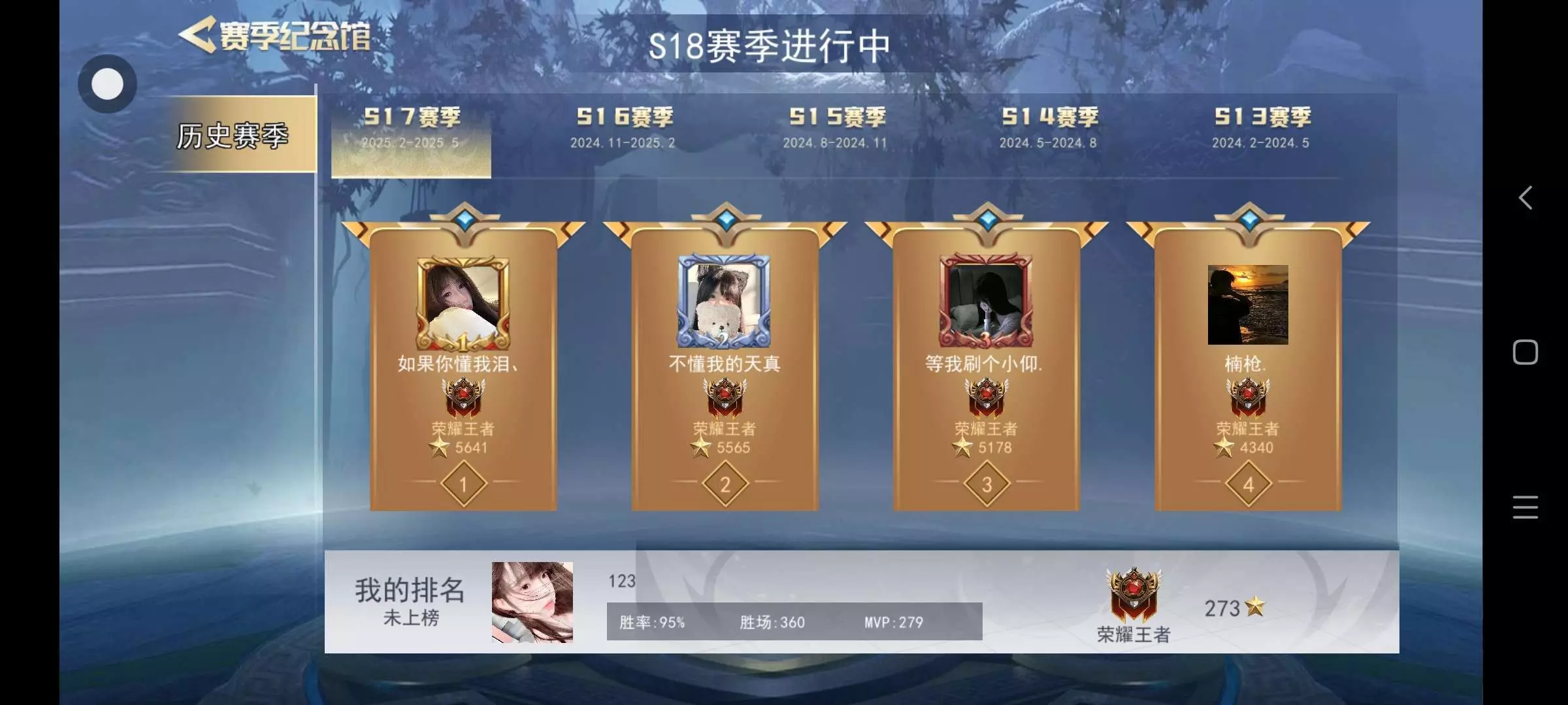我自己以前没拿过前十,S15是刚好2W