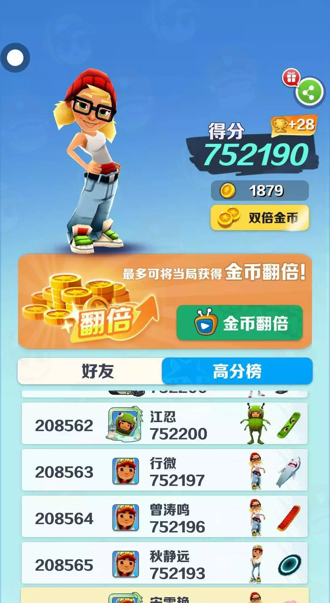 【地铁跑酷】“幸福来敲门 我说送错了我点的是自由 骗你的幸福根本不会来敲门”#申请精华