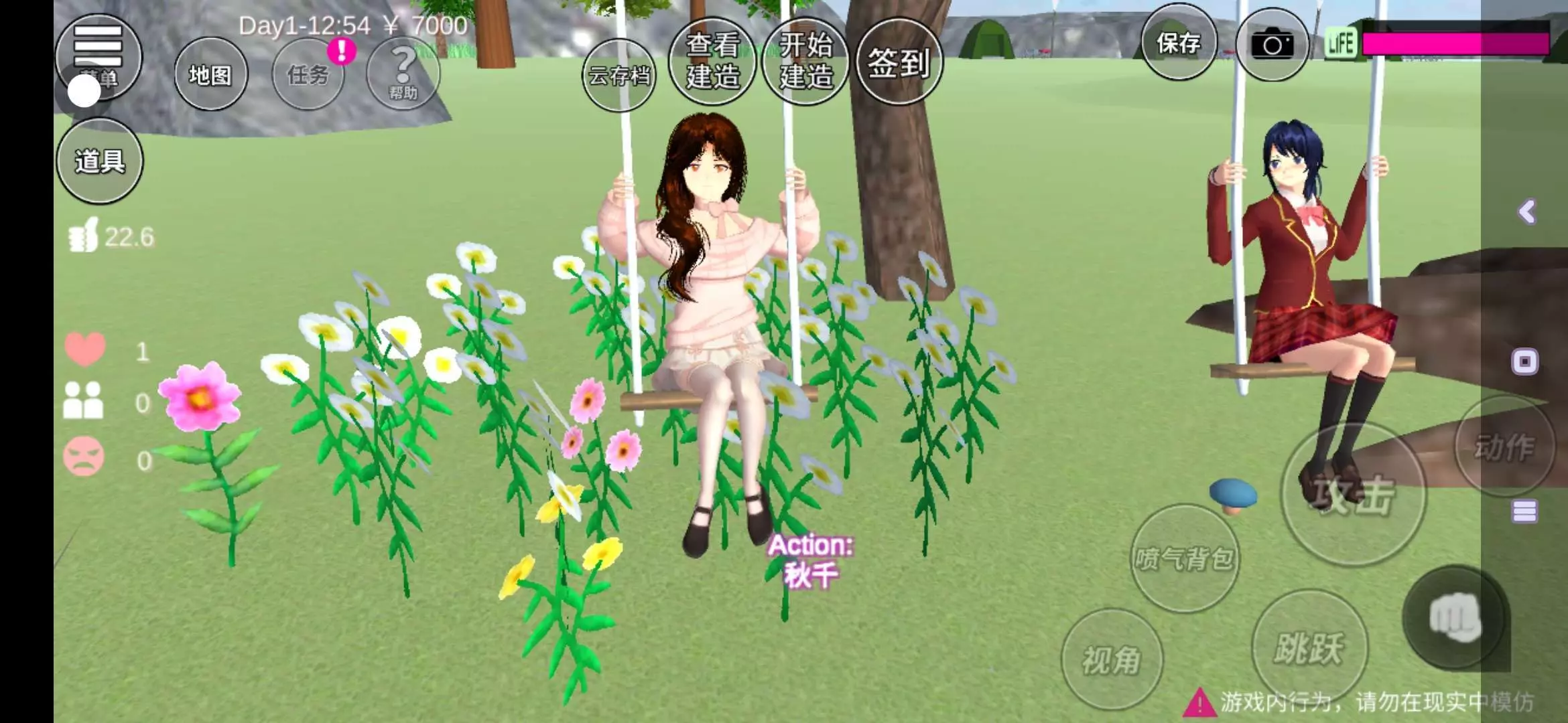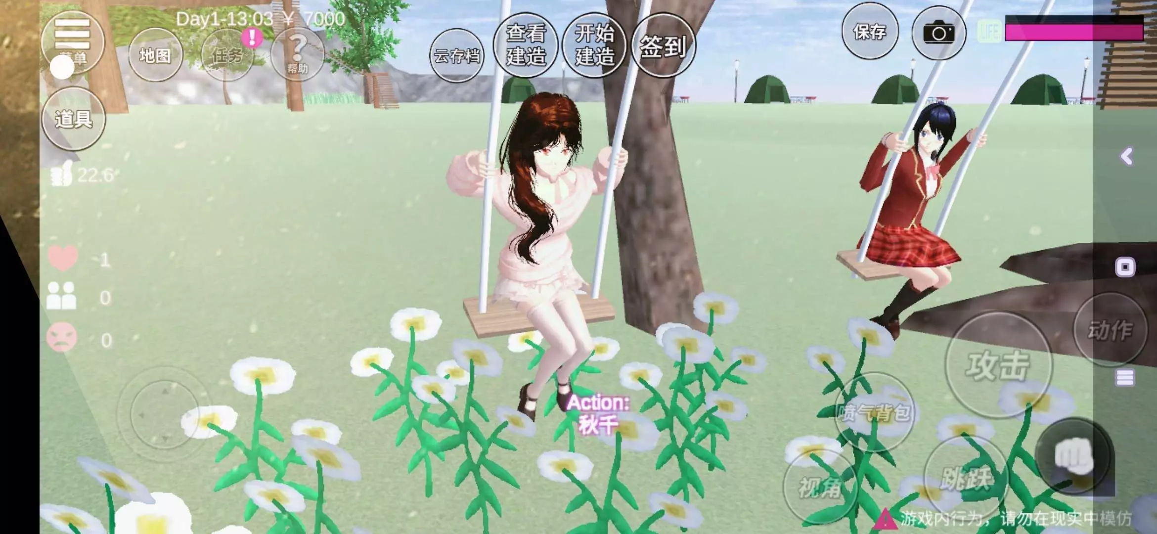 和好友蓝毛起玩秋千啦