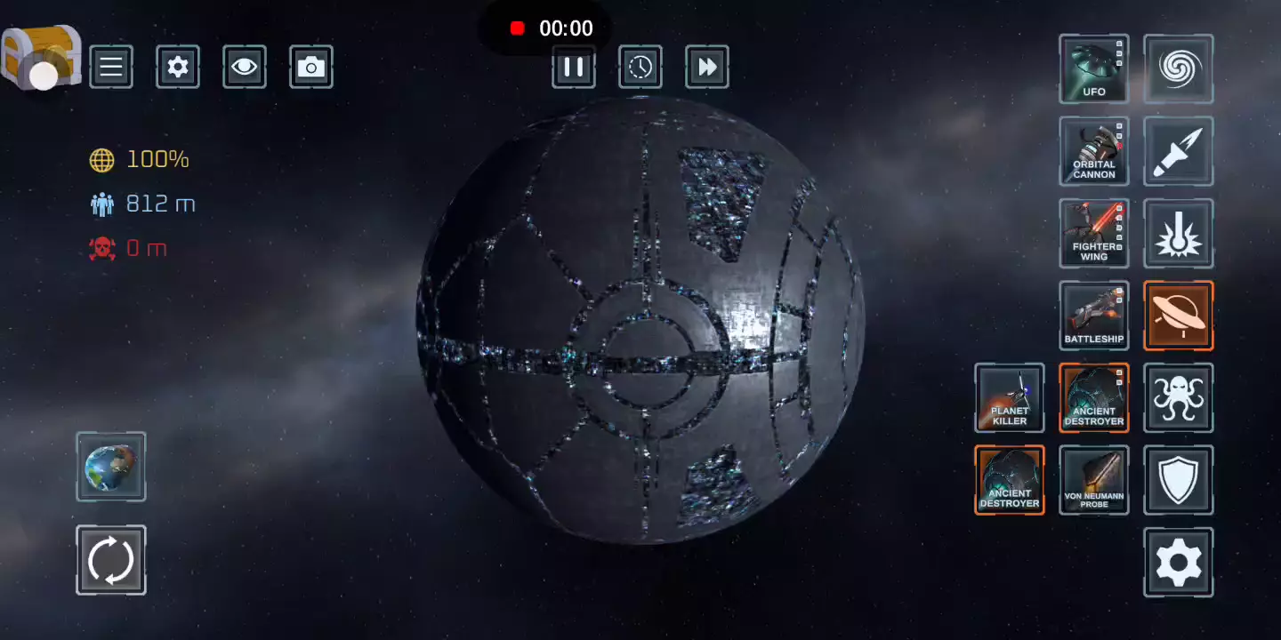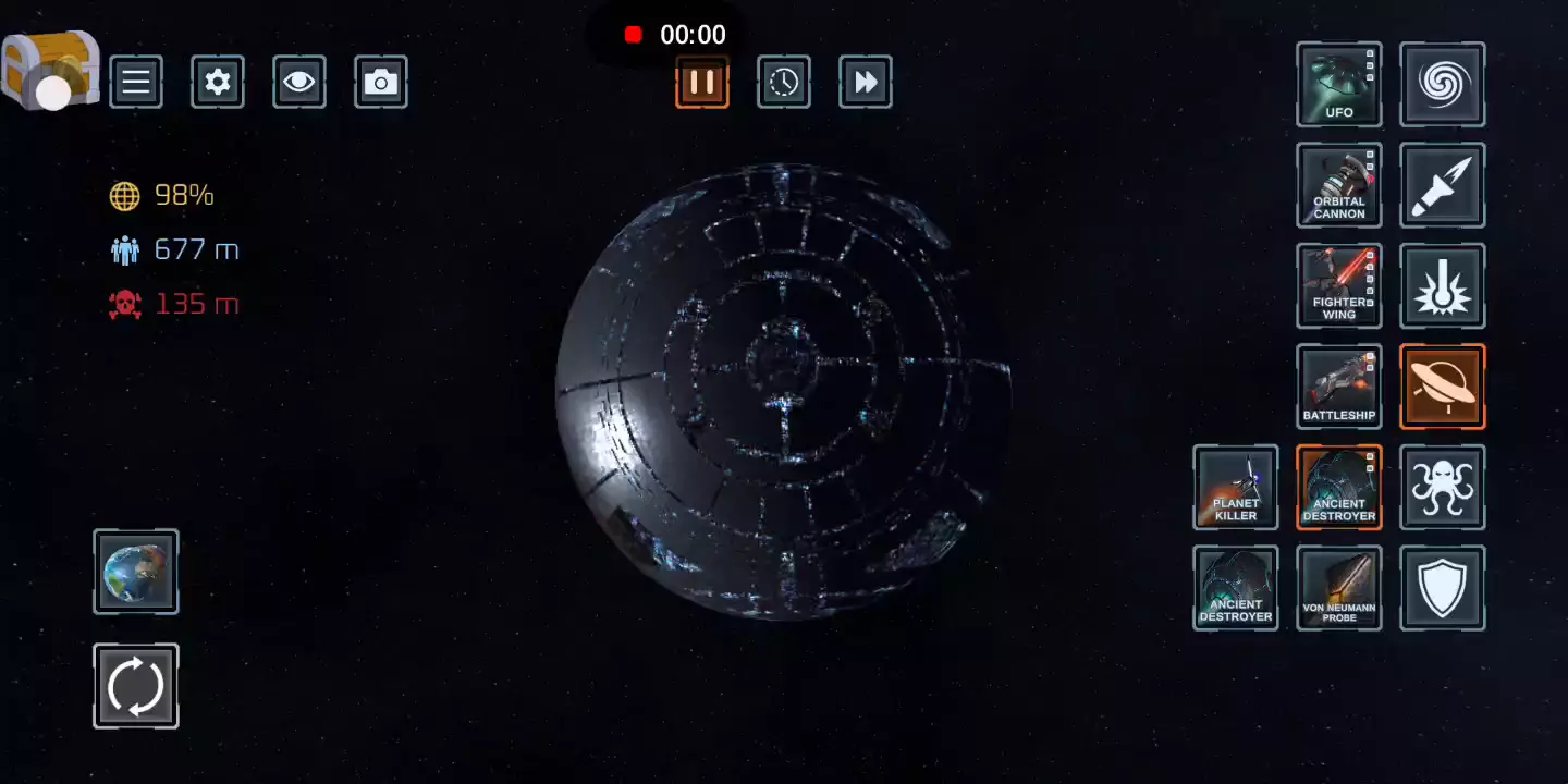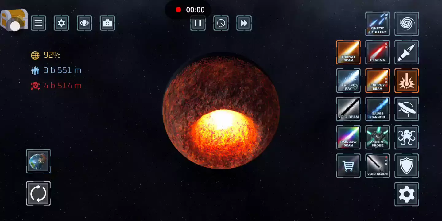【更新日志】 - 新增2种新武器 - 天神之击、制导导弹 - 新增2个新行星 - 戴森群、拐杖糖 - 年底添加随机礼品盒 - 添加武器名称 - 修复错误 一个星球破坏模拟器,它允许玩家使用各种不同的武器来破坏星球。其中包括核导弹,激光和小行星,甚至黑洞等高科技。