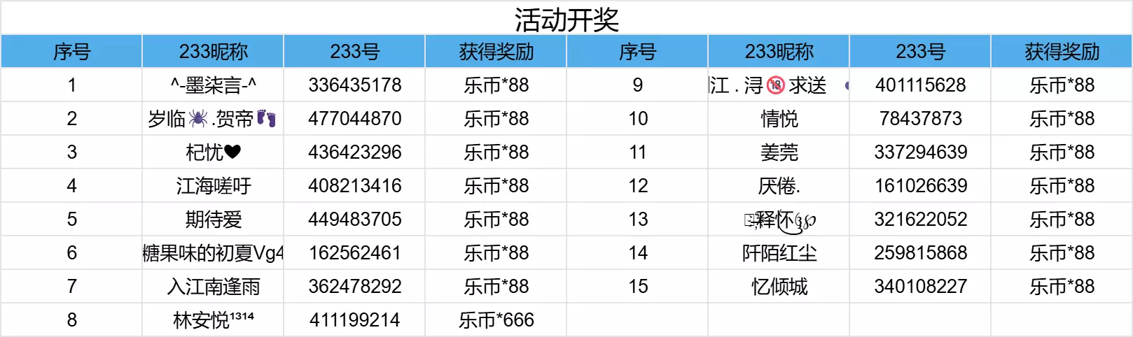 恭喜以上冒险家们获奖!