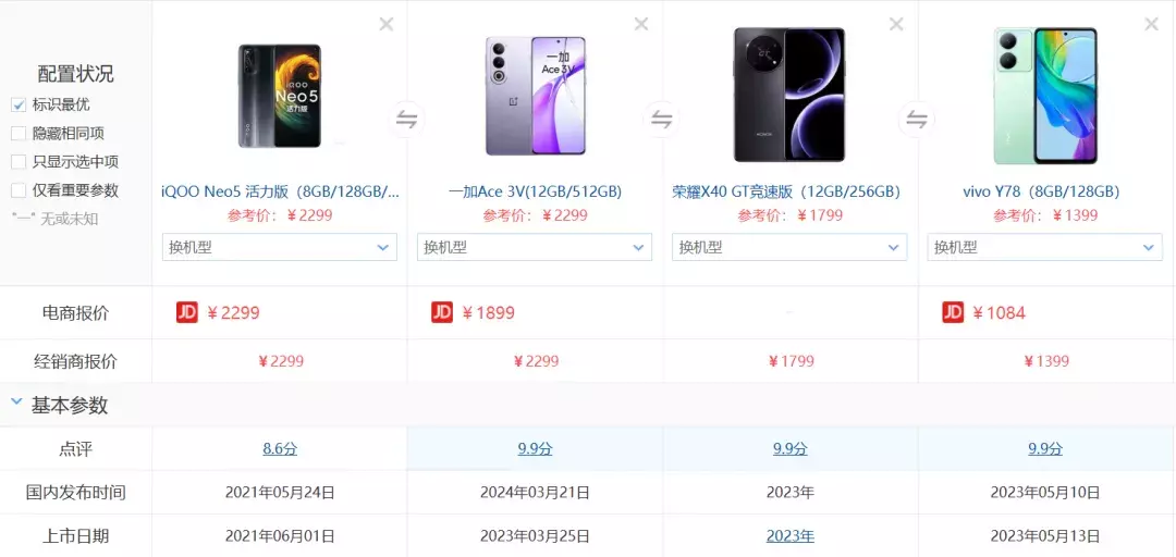 上期测评更新之后,兄弟们说想要看几年前的机子,这次吉哥找来了vivo IQOO Neo5活力版、一加Ace 3V、荣耀X40 GT竞速版和vivo Y78,一口气测个够!