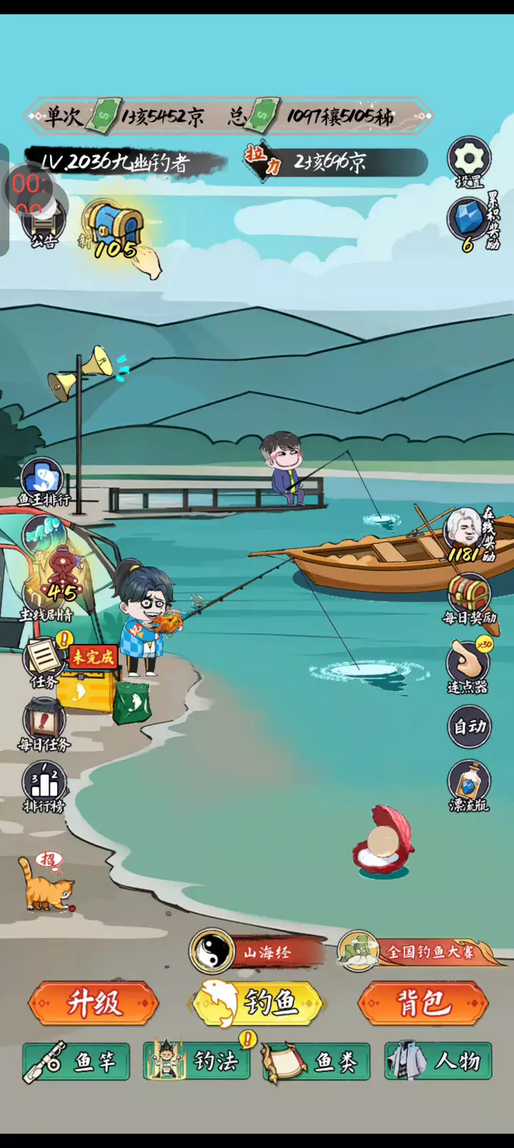 《小鱼人战争》是一款轻松休闲的放置钓鱼小游戏 游戏内有各种各样的鱼等你来钓 你需要通过不断提升自己的等级,学习更多的钓鱼秘籍才能把珍惜的,远古的,超自然的大鱼钓起来放进自己的鱼塘里。 这真实一款超级爽完的钓鱼游戏,有趣而且很精彩哦~~~!!!