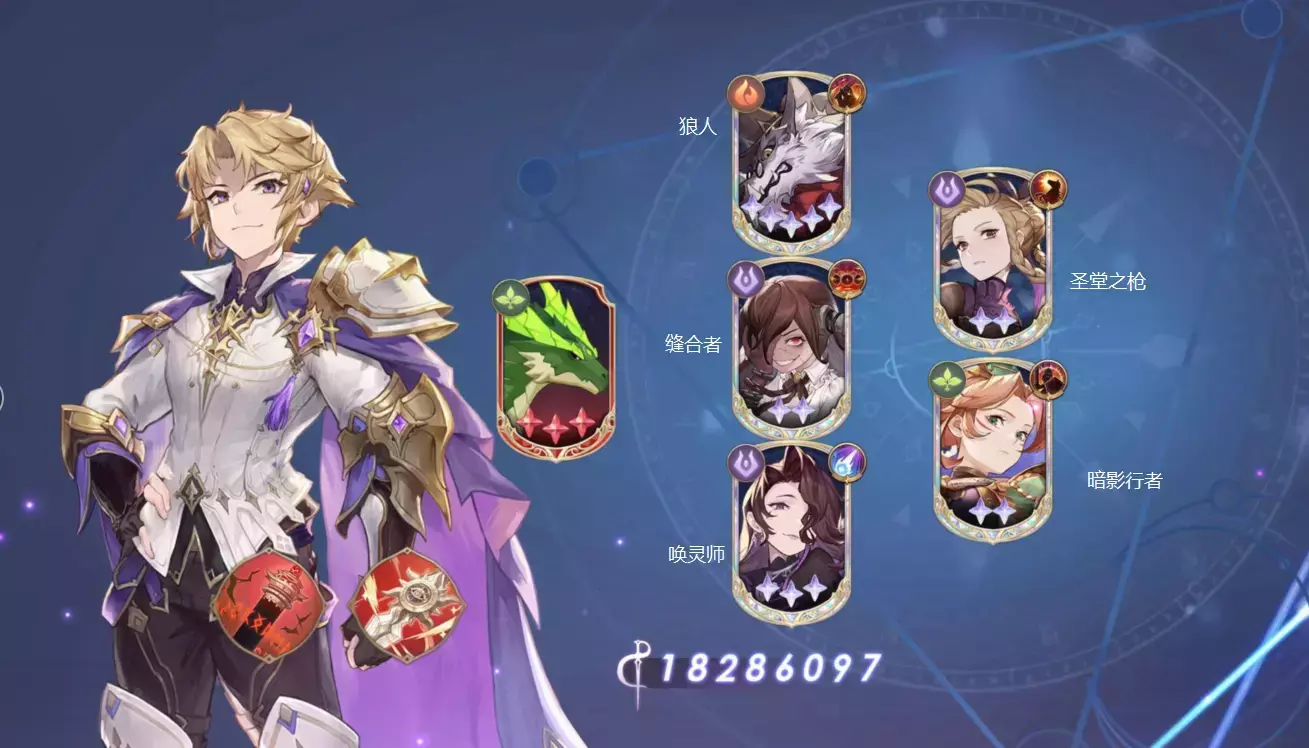 此阵容能对敌方后排造成极大威胁,缝合者与暗影行者双刺客近身攻击敌方后排,唤灵师远程攻击后排,狼人与圣堂之枪主攻前排。