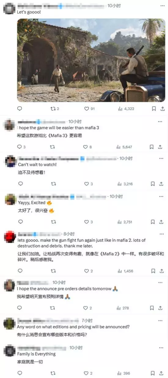 在评论区里,很多玩家表示非常期待,鉴于《四海兄弟》系列在剧情上的表现十分出色,有玩家希望《四海兄弟:故乡》能够维持这一点,还有玩家希望官方能够在此公布游戏的发售日期等信息。