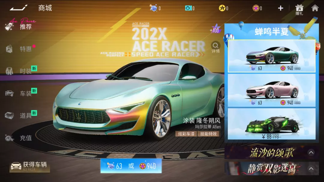5月8日更新后,玛莎拉蒂 Alfieri 涂装-夏朵玥梦和涂装-隆冬朔风将于同步上架商城和折扣节,超低折扣限时一周,喜欢的赛车手可千万不要错过!
