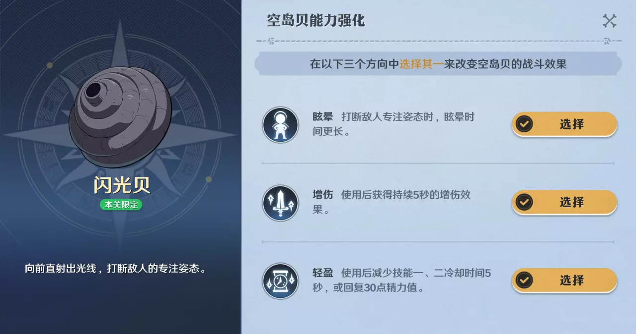 护体炎贝:增加伤害,火球最大持续时间增加1秒。