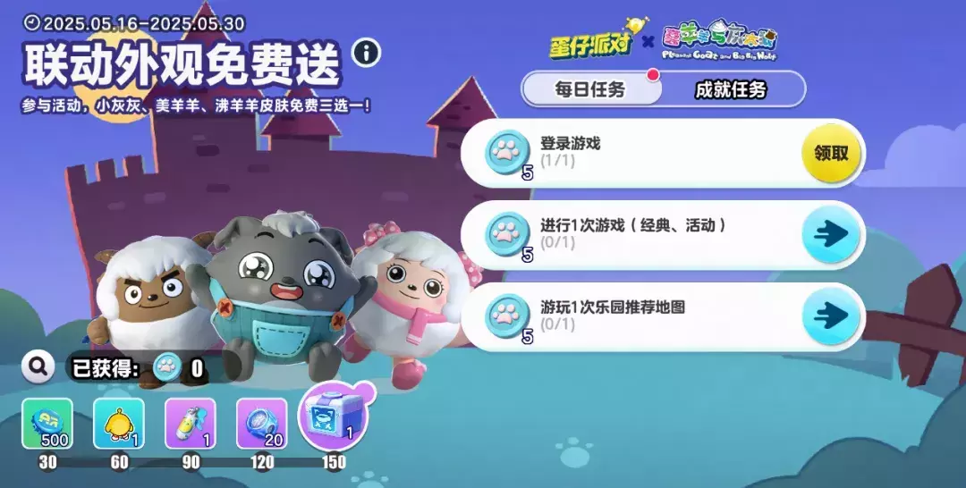 每日完成简单任务获取羊狼币