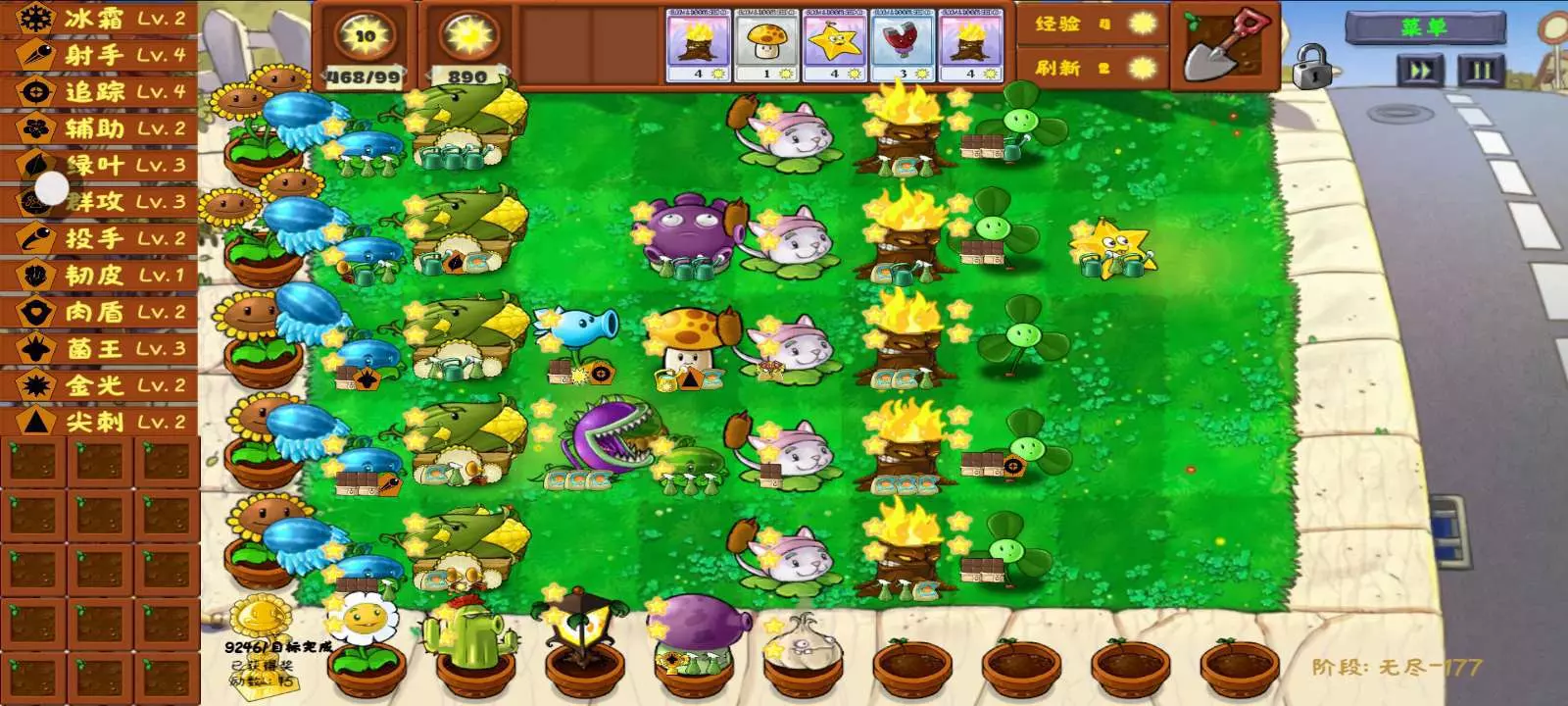 抽象阵容(吐槽一下,冰瓜的减速没有穿透寒冰射手好)阳光菇和寒冰射手当上元老了