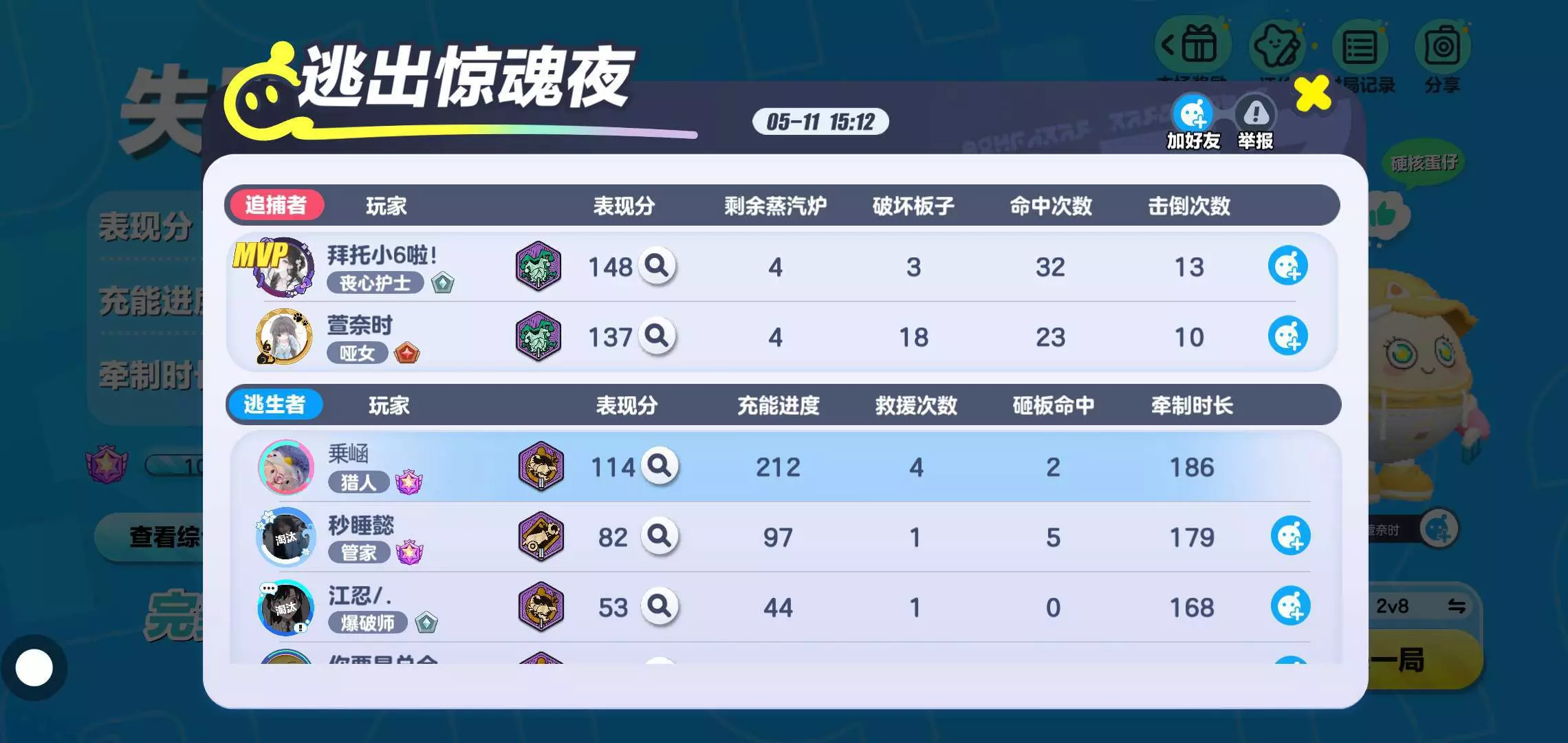 哇哇哇,第一次逃生表现分破百哎!