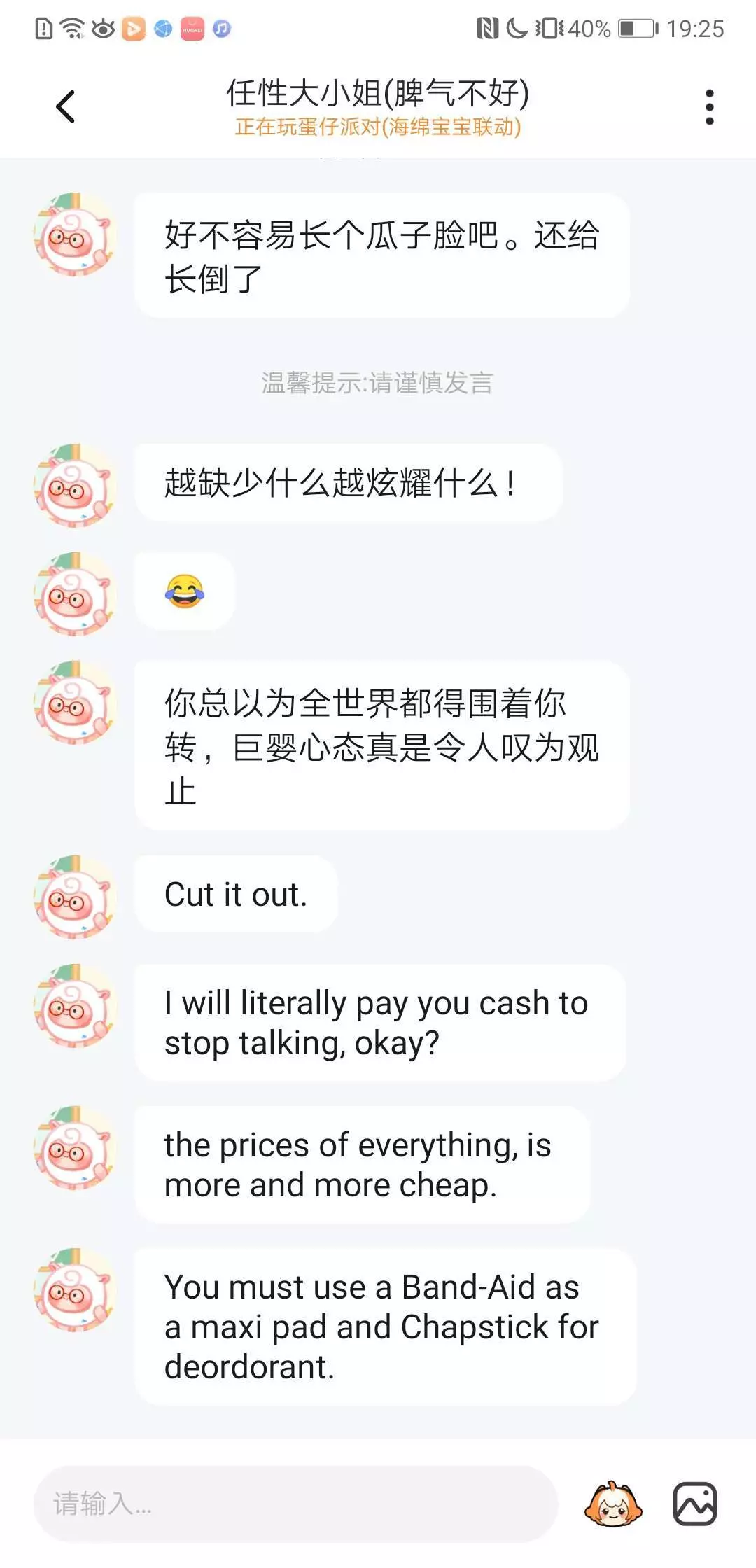 有时候我真的挺无语的,我就只是不理解他的意思,她就骂我死装,后面我也加了她的好友