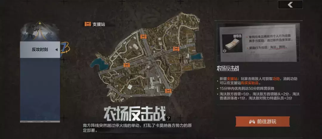 活动期间,地图界面限时开放【势力对抗-农场】玩法入口,也可通过活动-玩法模式页面点击【农场反击战】进入。