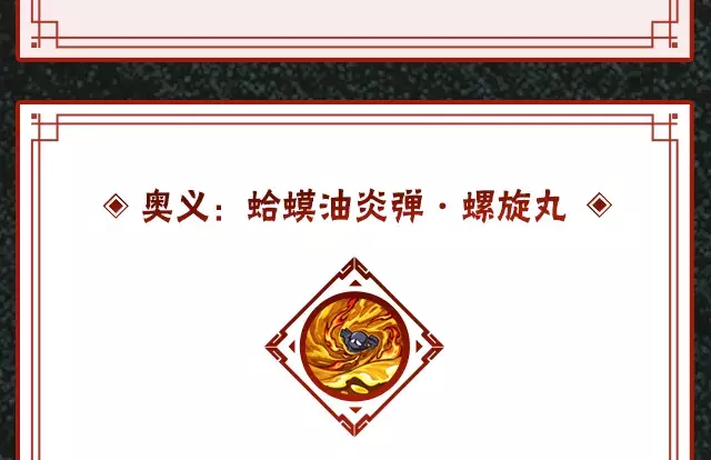 在蛤蟆油炎弹之后接一技能,也会瞬身至空中使用螺旋丸追击。传说自来也释放的螺旋丸成功命中带有灼烧效果的敌人,会变成火焰螺旋丸并最终爆发。