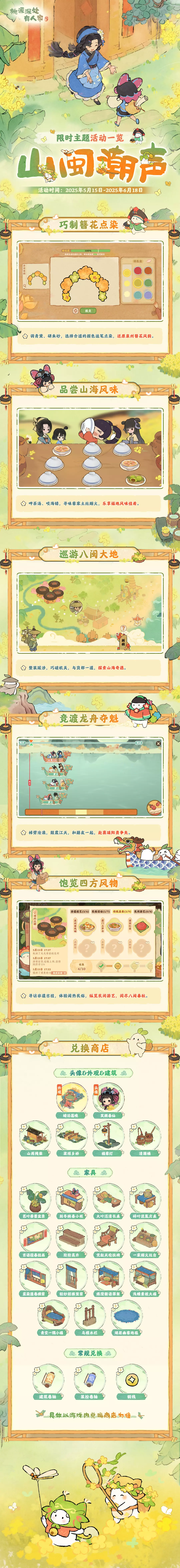 锵锵,各位萝萝山山民好呀!全新版本福建主题限时活动「山闽潮声」将于5月15日10点正式开启萝!