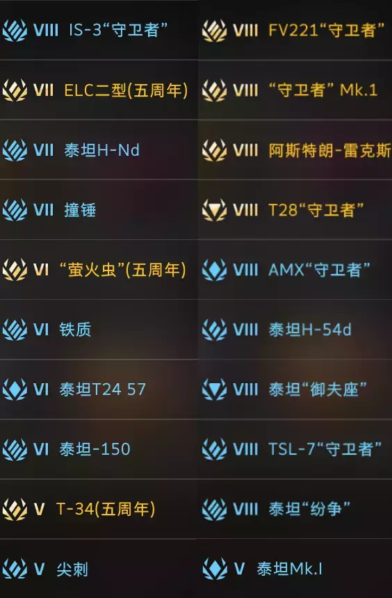 使用派系徽章后,您可随机获取下列坦克中的一辆: