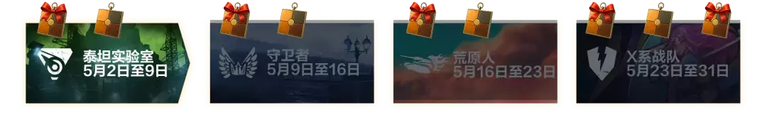 5月2日至4日,请领取您的第一份奖励:派系徽章礼物箱 ——包含1片派系徽章碎片与实用资源,有可能获取头像、个人档案背景、坦克附件或炫酷的传奇涂装。