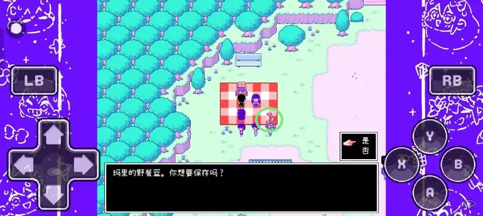 ☞存档点:想存档的话,得找到野餐垫上的玛丽。跑到野餐篮旁边,按下 A 键就能存档啦 。