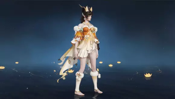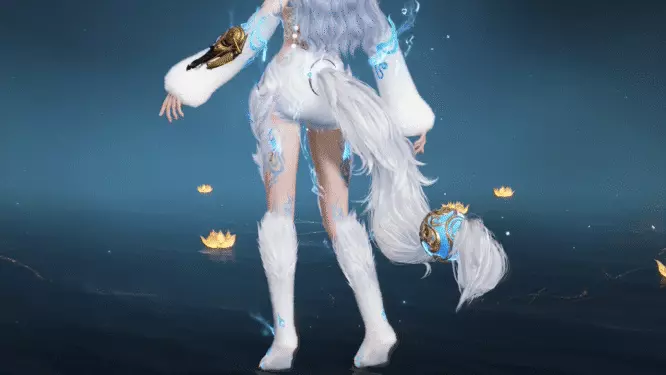 以神兽“夫诸”为原型,主体白色,毛绒覆于臂腿,触感轻柔温暖。蓝纹与金饰相互映衬,添神兽灵气,整体既清冷出尘,又俏皮灵动。