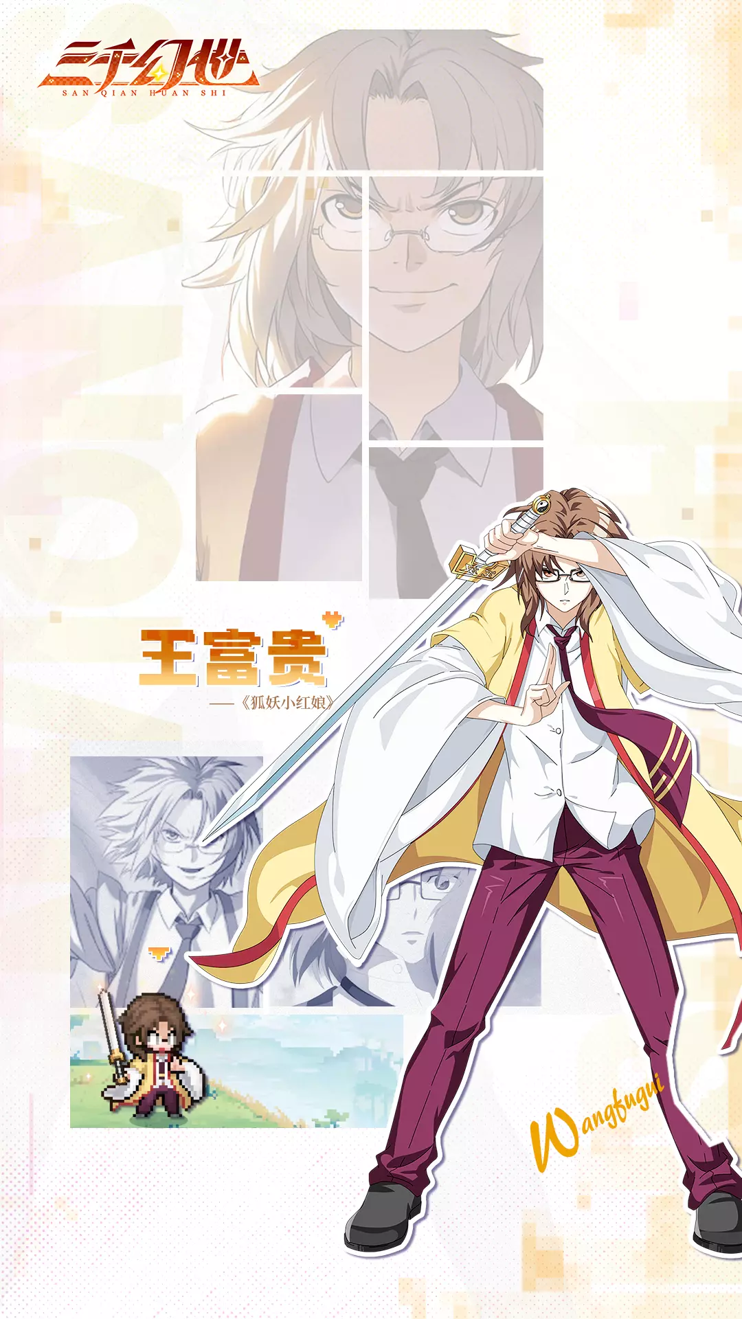 王富贵,王权富贵的转世。自称“泡妹王”,以有钱为傲。他极其讨厌妖怪,实际上,这是因为前世的王权富贵斩杀过太多妖怪,令他产生了愧疚之情。前世王权富贵与清瞳有再续前缘之约,因此王富贵与清瞳也有感情纠葛。