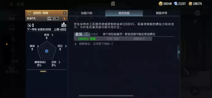 竞技模式中,满甲近距离状态下,QBB95-螳螂的伤害如图所示。