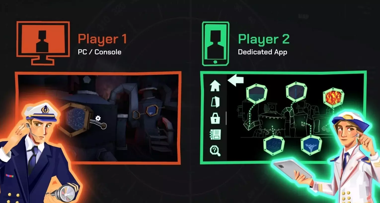 《双人大逃脱:失落的潜艇》是该系列的第二部作品,游戏故事发生于一艘在深海潜行的潜艇中。玩家将扮演两位军事专家,展开一场别开生面的“密室逃脱”之旅,通过默契合作,突破重重阻碍,在限定时间内阻止潜艇发射鱼雷,避免一场世界战争的爆发。