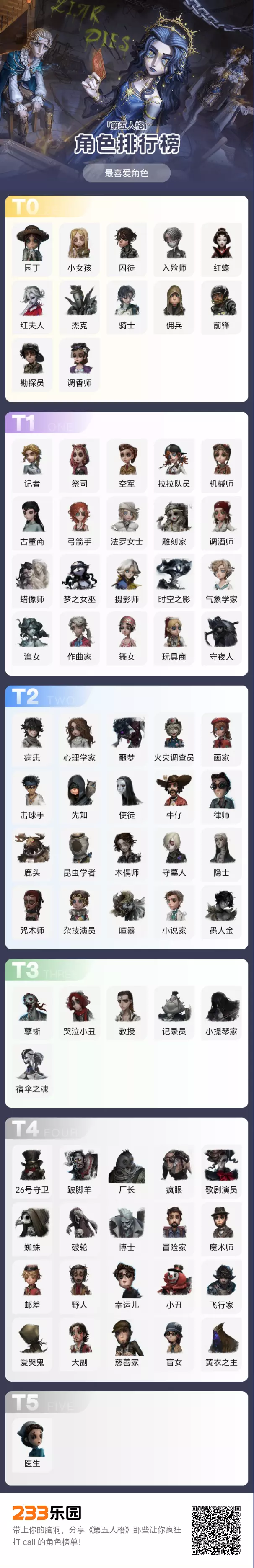 第5人格最喜爱角色榜单