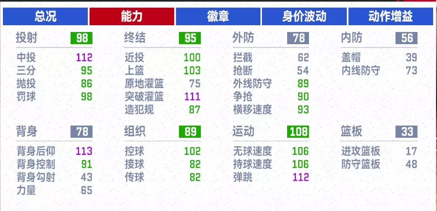 【以下球员数据均为满突未升级未加点】