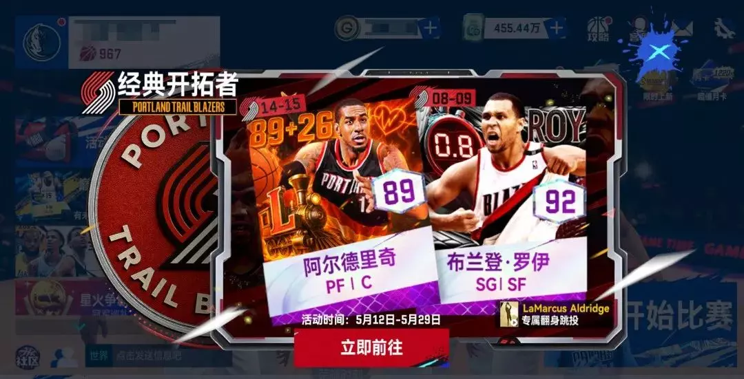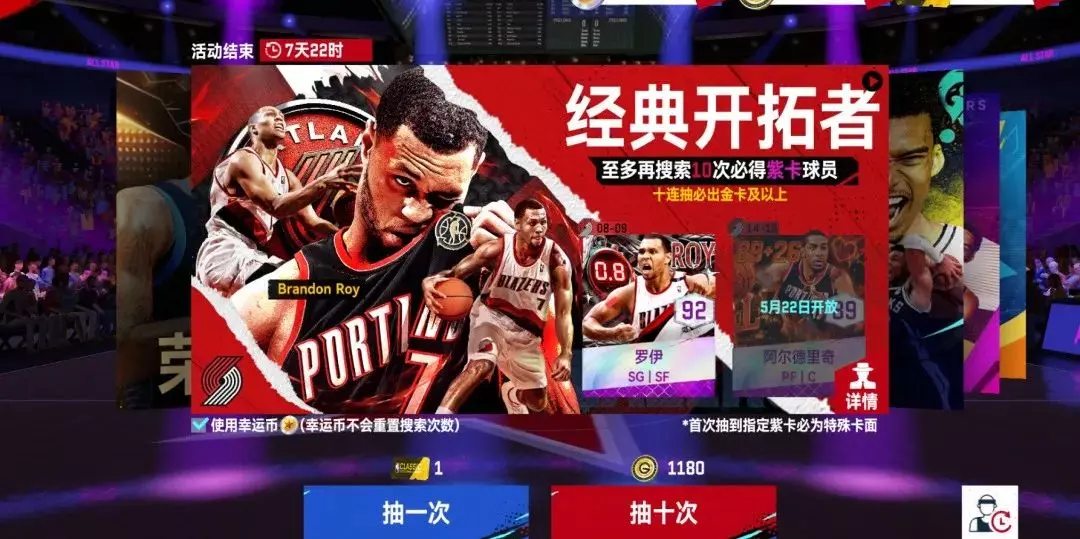 活动期间,可使用经典球探卡和G币在【经典开拓者】卡池中,招募紫卡球员罗伊、阿尔德里奇和经典开拓者球员。