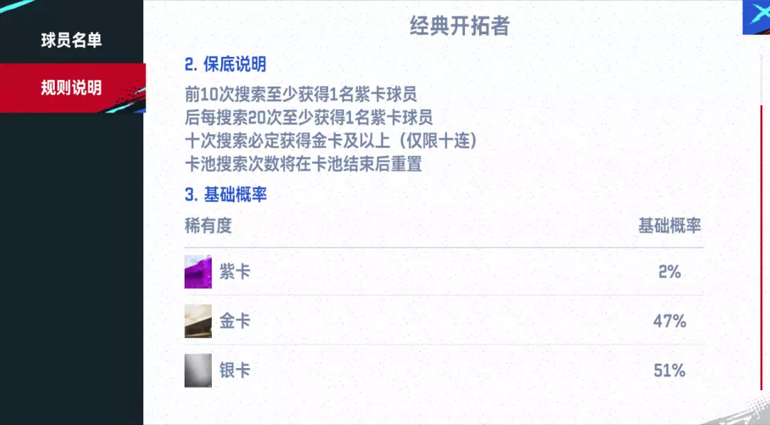 1、更新前未使用的“经典球探卡”仍可在“经典开拓者”卡池使用