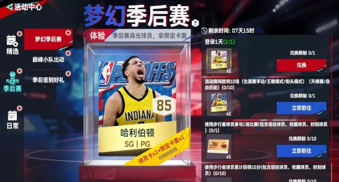哈利!这是你的梦幻时刻吗?完成任务体验季后赛高光球员,拿哈利伯顿限定卡面和球员单卡!