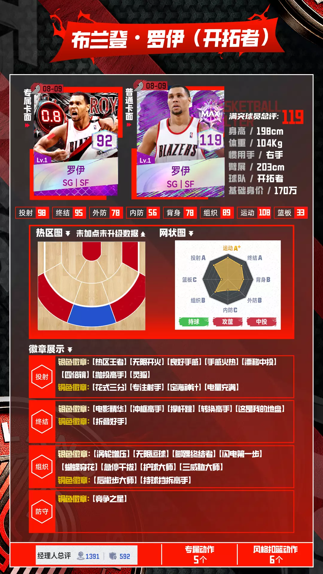 罗伊,开拓者队伍历史上最强得分手之一,全能的进攻技术和优秀的终结能力配合上罗伊专属的移动运球包,喜欢持球大核的Boss一定不能错过!