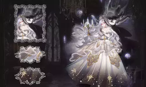 裙摆如月光倾泻,纯白蕾丝缀满星辰的密语,而焦灼的焰痕悄然攀附——那是暗面双子炙热的低语。