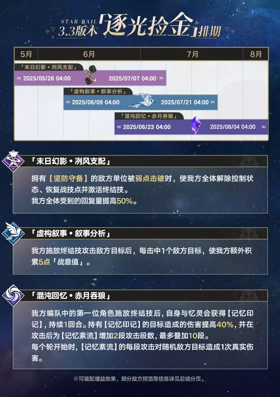 开拓者好呀~快来看看3.3版本「逐光捡金」的排期表帕!