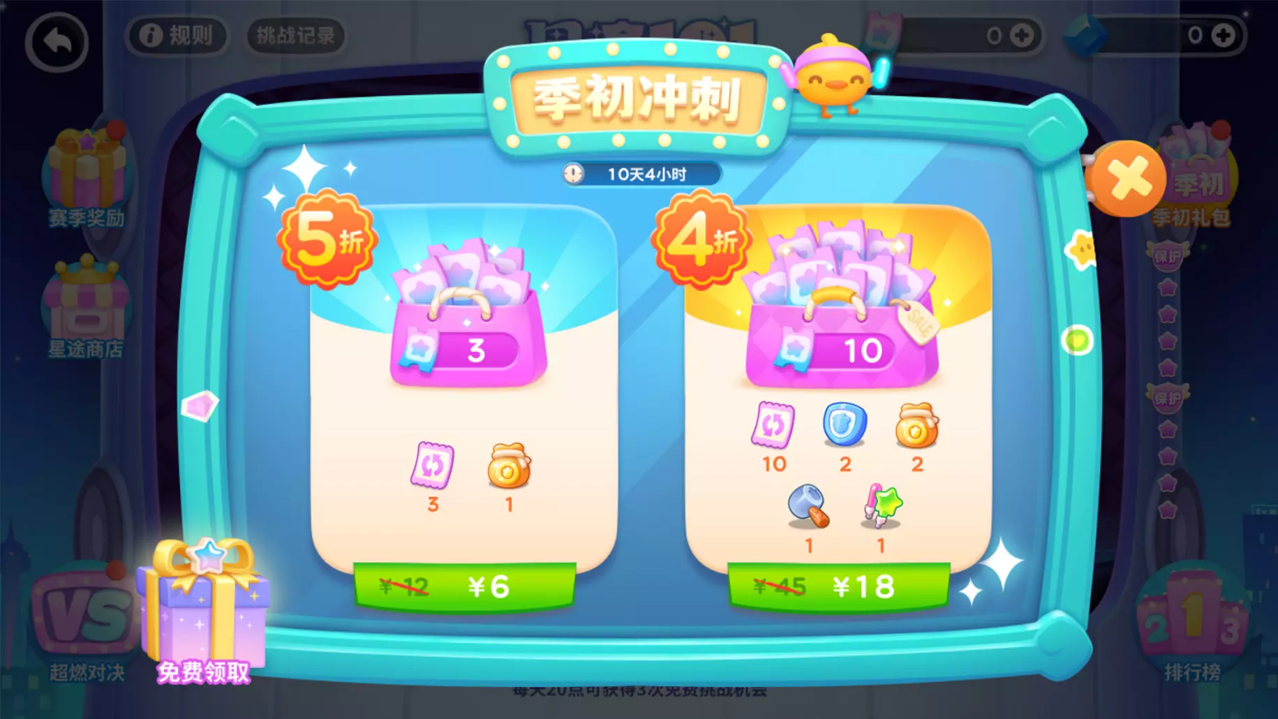 「季初冲刺」礼包助力新赛季!赛季开启首周5月17日-5月23日限时上线,内含门票、刷新券、关卡道具,轻松爬楼好伴侣~左下角还能领取每日免费礼包,千万不要错过哦!