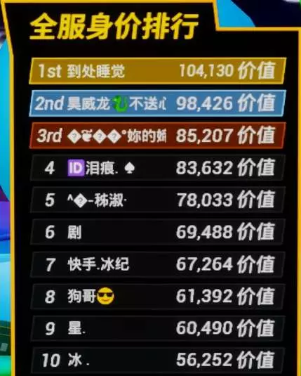 恭喜@到处睡觉 登顶全服身价排行榜第一哦~