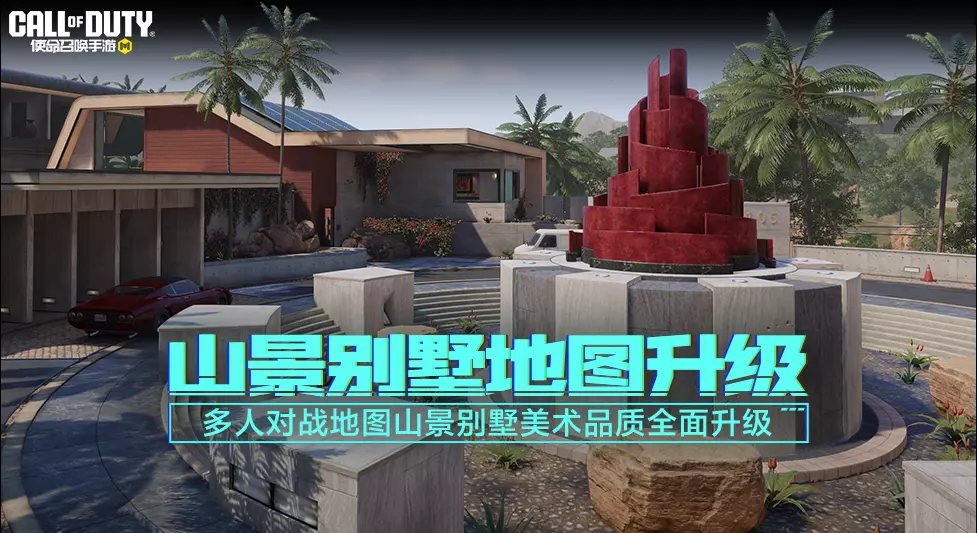 5月14日(明天),多人对战-限时-地图模式:山景别墅回归!山景别墅的材质已迎来全面升级。战士们熟悉的圆形广场、中央花园、豪华泳池、豪车车库等标志性地区都已焕然一新!