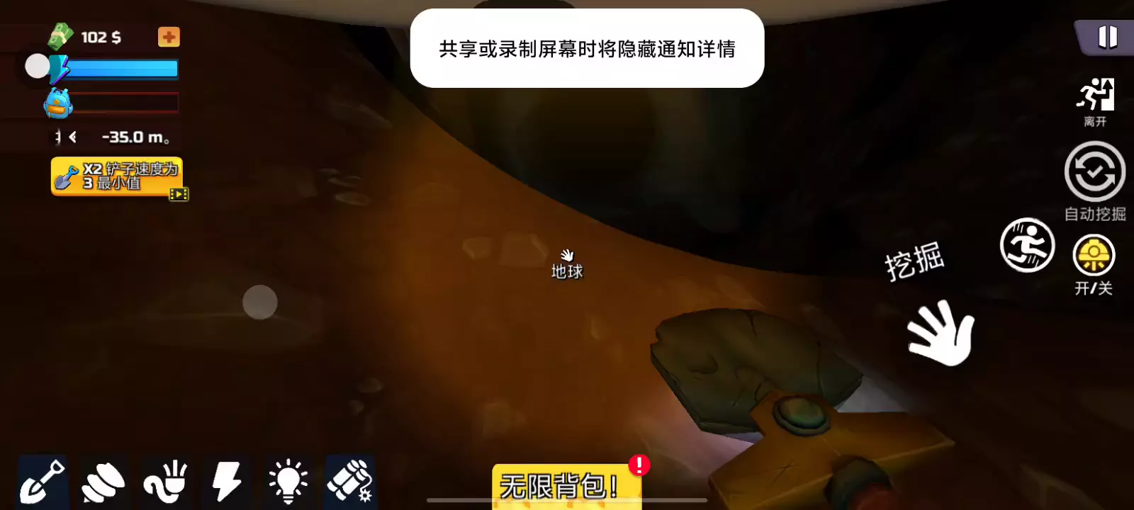更新日志: - 增加了土层——挖得越深,土层就越坚硬! - 调整了商店价格平衡 - 修复了一些错误 【游戏简介】 一个关于挖宝的游戏:从你的院子开始,拿起铲子,潜入数百米的地下寻找宝藏!您能挖出几公里长的竖井来找到所有宝藏吗?地下隐藏着许多有趣的东西:宝藏、宝藏、珠宝、金钱甚至垃圾! 掘地求财同人版是一款模拟游戏,玩家可以在院子中挖出一个无底深洞,探索隐藏着的宝藏!