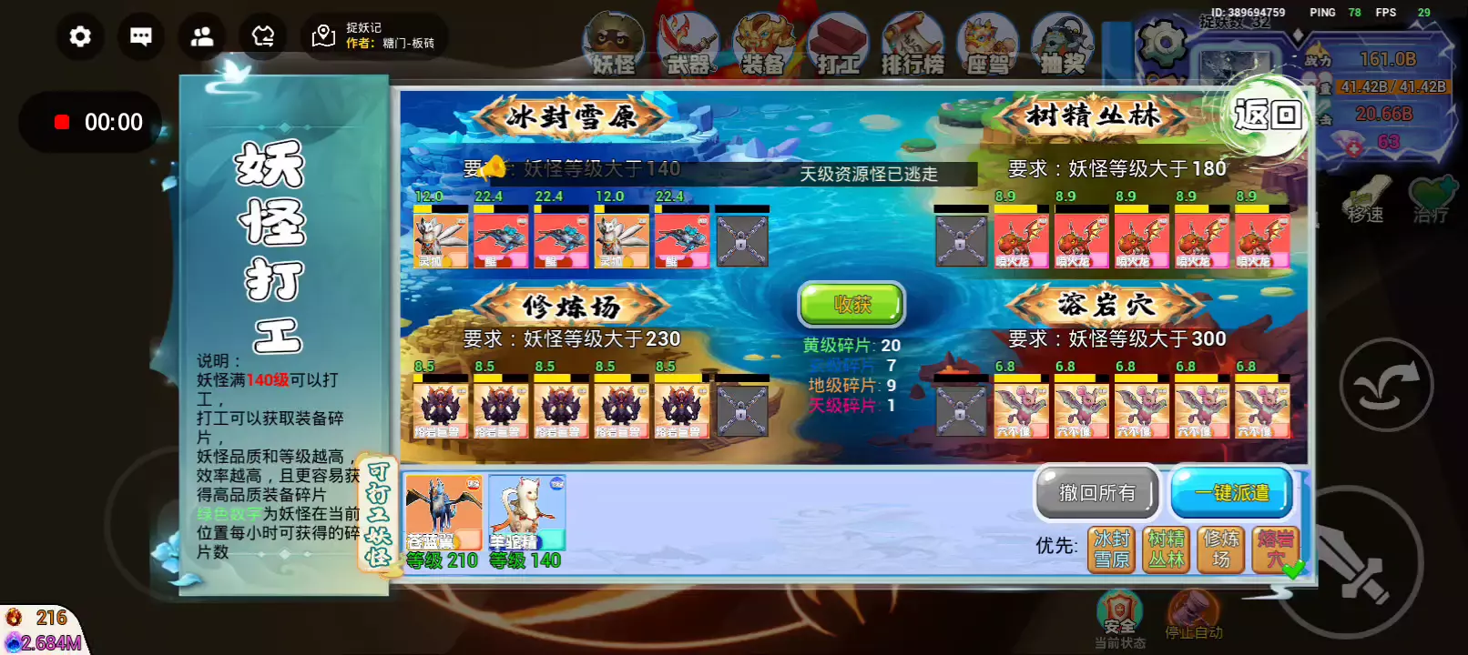在这里无论做什么都能变强! 无限收妖! 培养你的妖怪 无限升级 从黄级捉妖师提升境界到神级捉妖师 解锁百种武器和妖怪 每个武器都有专属特效 无限升级武器 K头快人一步