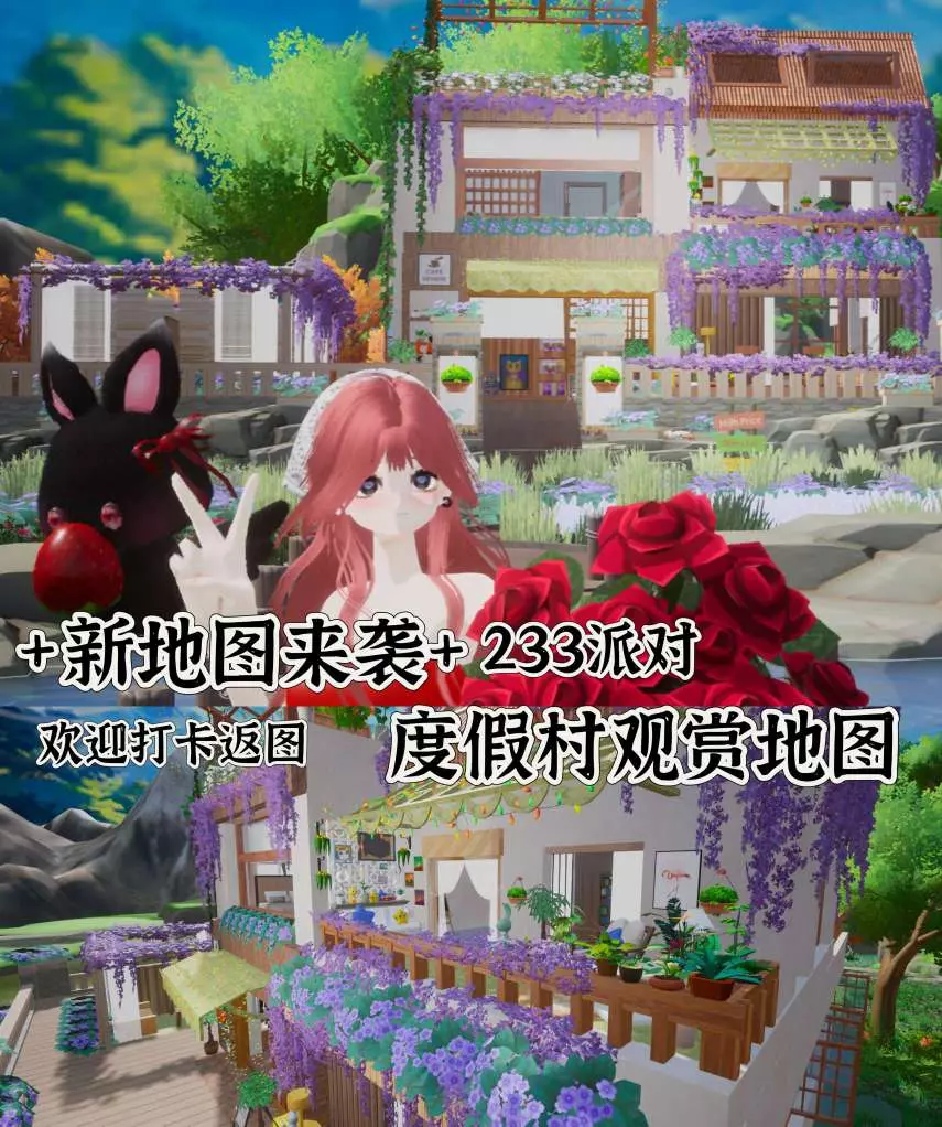 🏝一楼是休息区,二楼有两间客房,顶层是天台。屋前是花海+休息区。屋后是树林+水系。后续会+玩法。地图适合打卡拍照,不容错过。欢迎把自己的美照发在评论区,欢迎留言给我哦!地图未完!持续更新中……#233造物岛 #233派对 #233捏脸