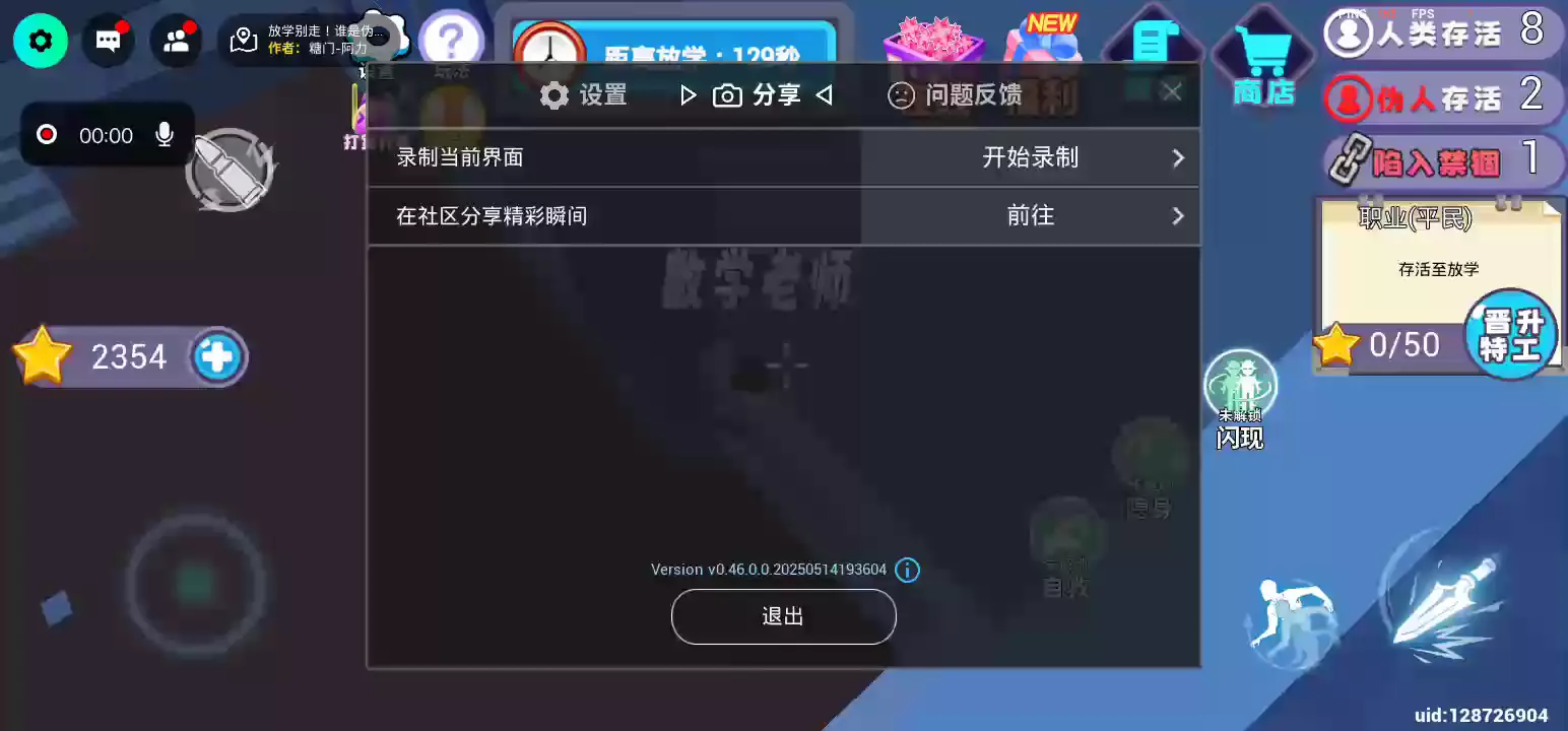 规则怪谈学校混入了一名怪物杀手,拾取星星升级成为特工可获得武器,找出伪人杀手挑战他,在战斗中击败他即可获得胜利。多拾取星星可获得移速成长升属性。或者坚持到放学逃离学校也可以获得胜利,躲猫猫排行榜上有你的传说吗?
