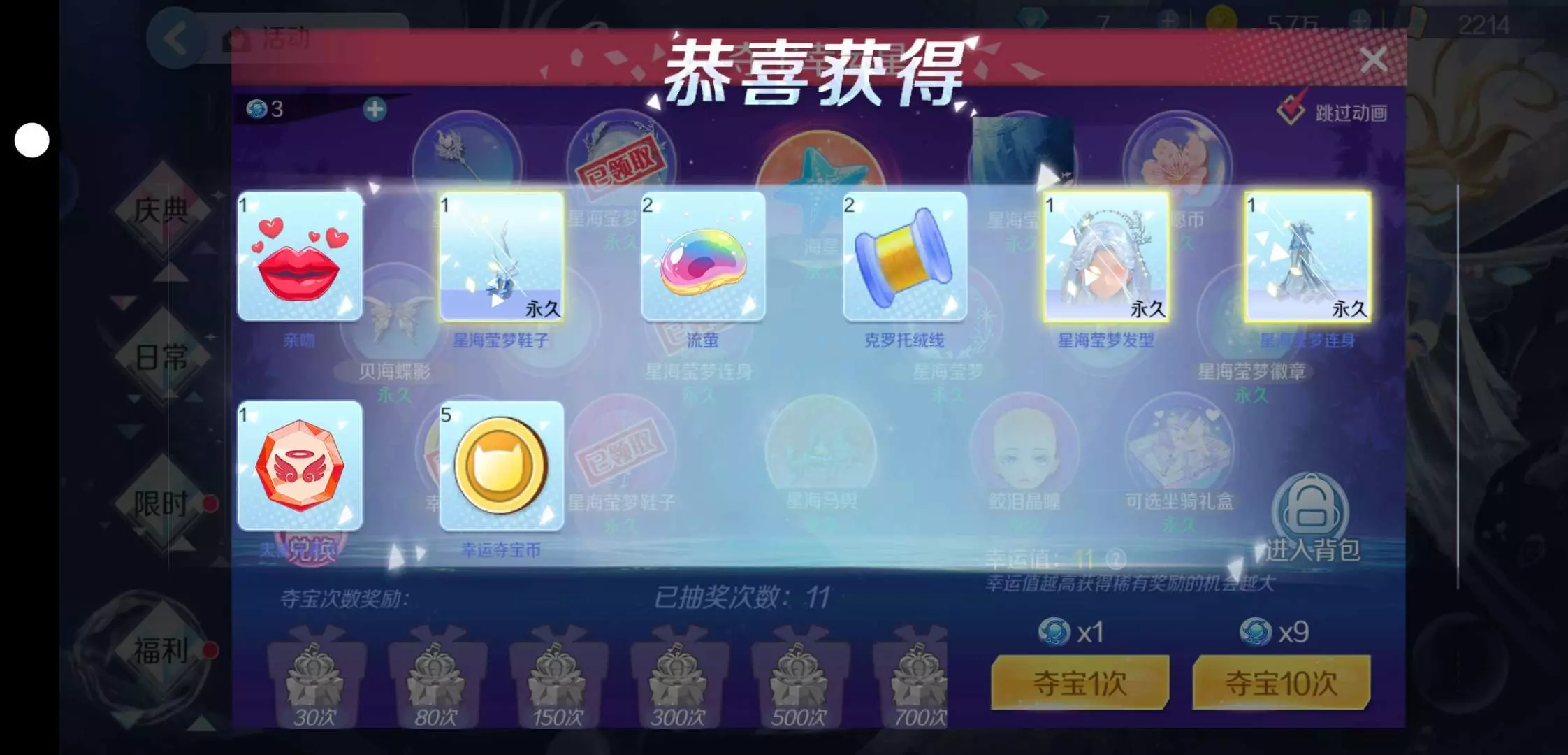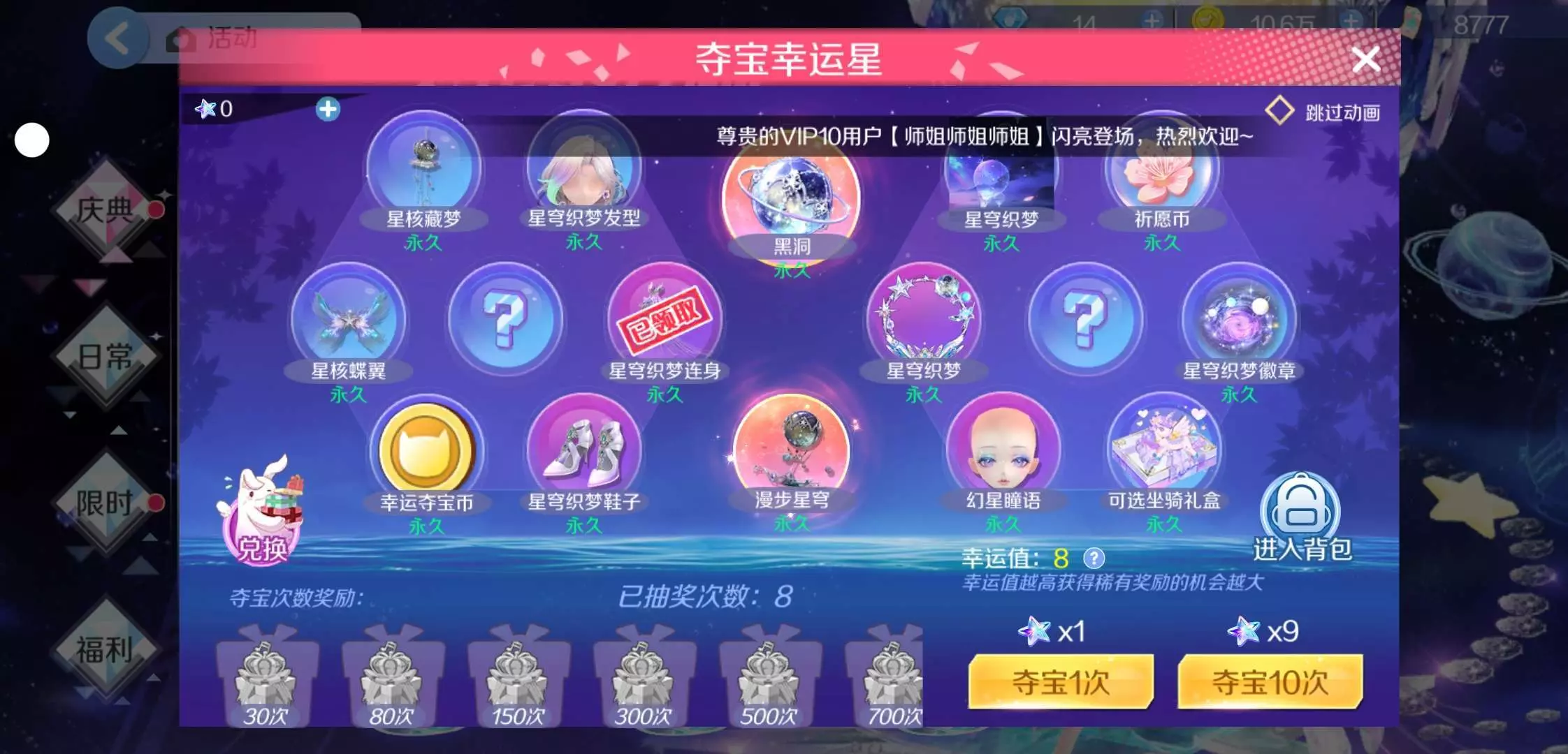 ♛昨天前天没登上去,删了重下,等了好久,今天进去之后抽彩蛋欧气爆棚。