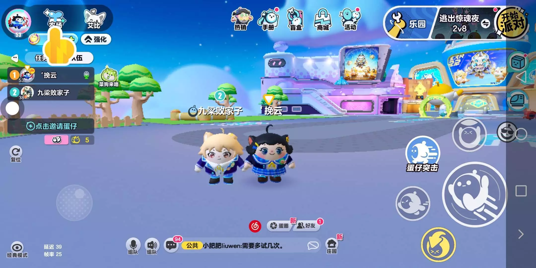 不光是那里面的模式好玩,还可以和朋友聊天,一起开麦说话,那些乐园地图也是很好玩的,蛋仔派对,也有很多玩家在玩,我认为蛋仔派对,是一款能让人越玩越上头的游戏,解密推理,惊悚刺激,加速奔跑,都是蛋仔派对里面,我想形容的,我喜欢他的原因是不仅他们模式好玩,他们做的每个皮肤外观也很好看,蓝皮紫皮都一样肯定他们做的这些皮肤都很用心吧,为了给玩家更好的体验,会时不时更新,还会赠送彩虹币福利,所以让我因此喜欢上了蛋仔派对,如果你们也想玩,可以去尝试哦。还可以叫上自己的好朋友一起玩!#